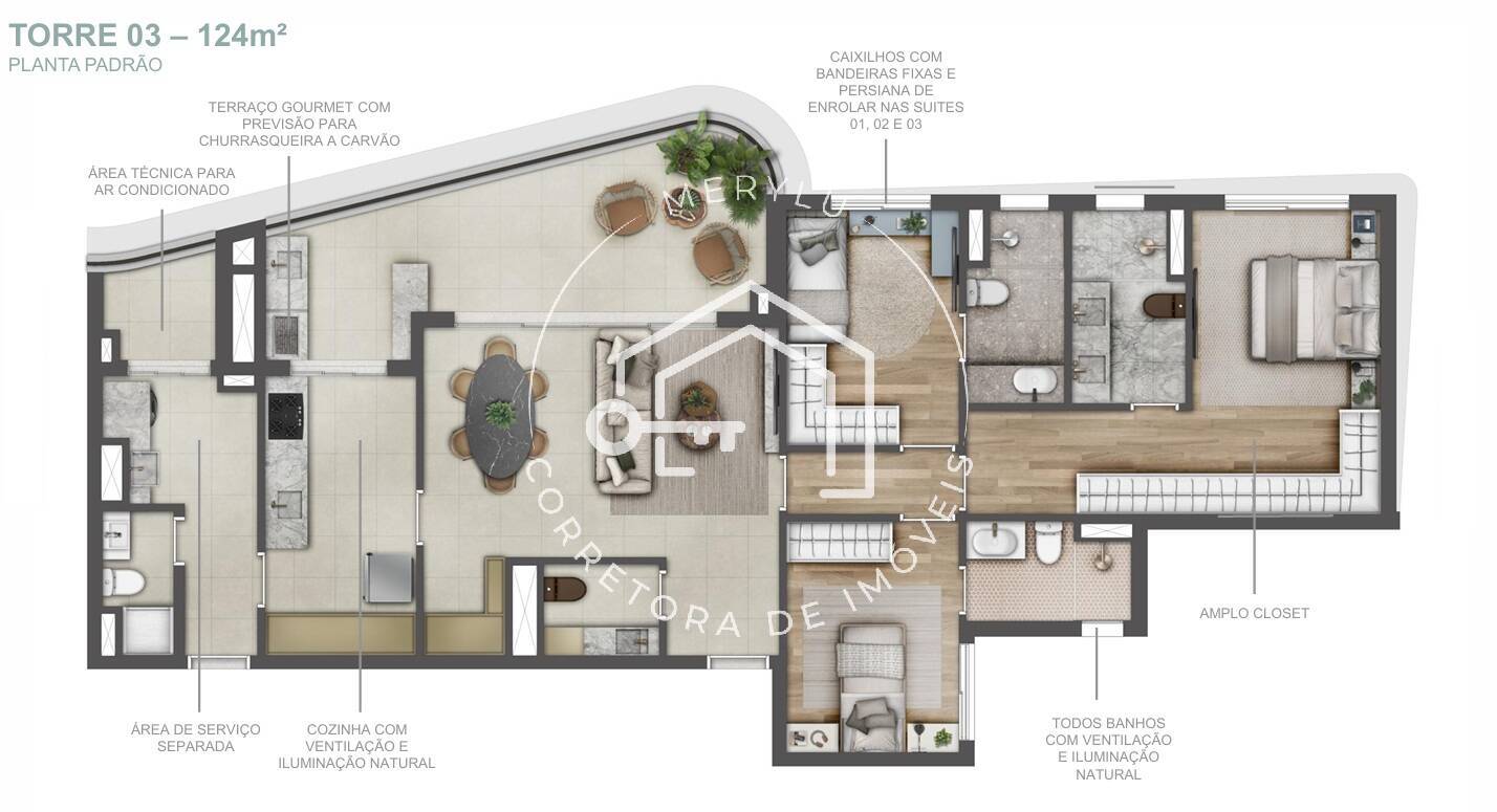 ✨ Apartamentos amplos de 3 e 4 suítes, com hall privativo e terraço gourmet.